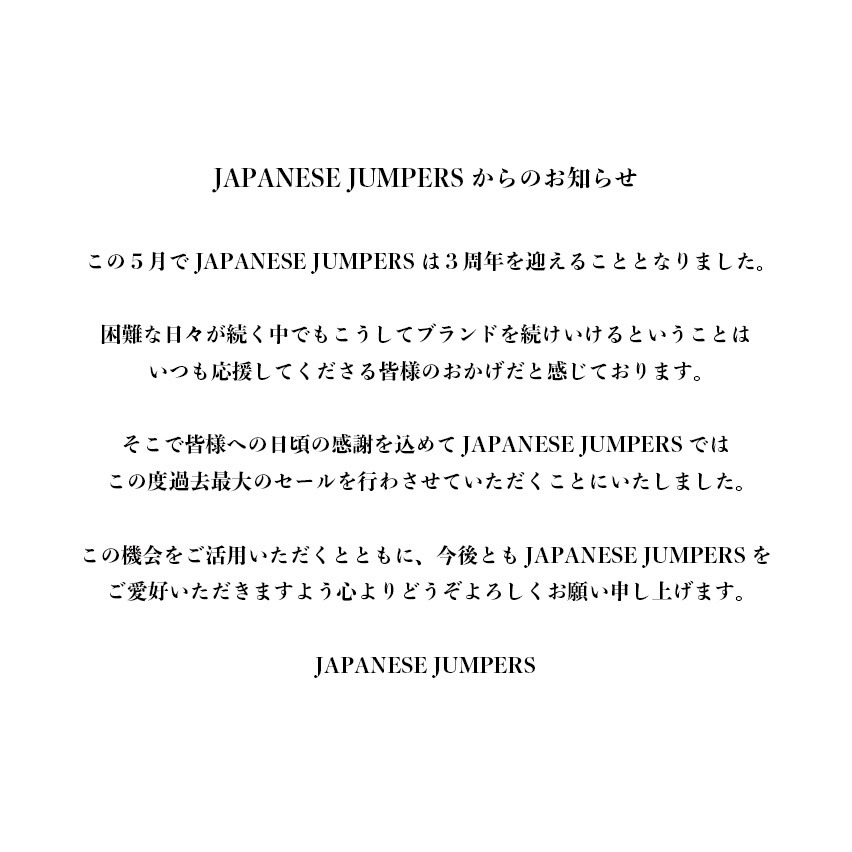 皆様のおかげで3周年!大感謝祭開催中!! | JAPANESE JUMPERS
